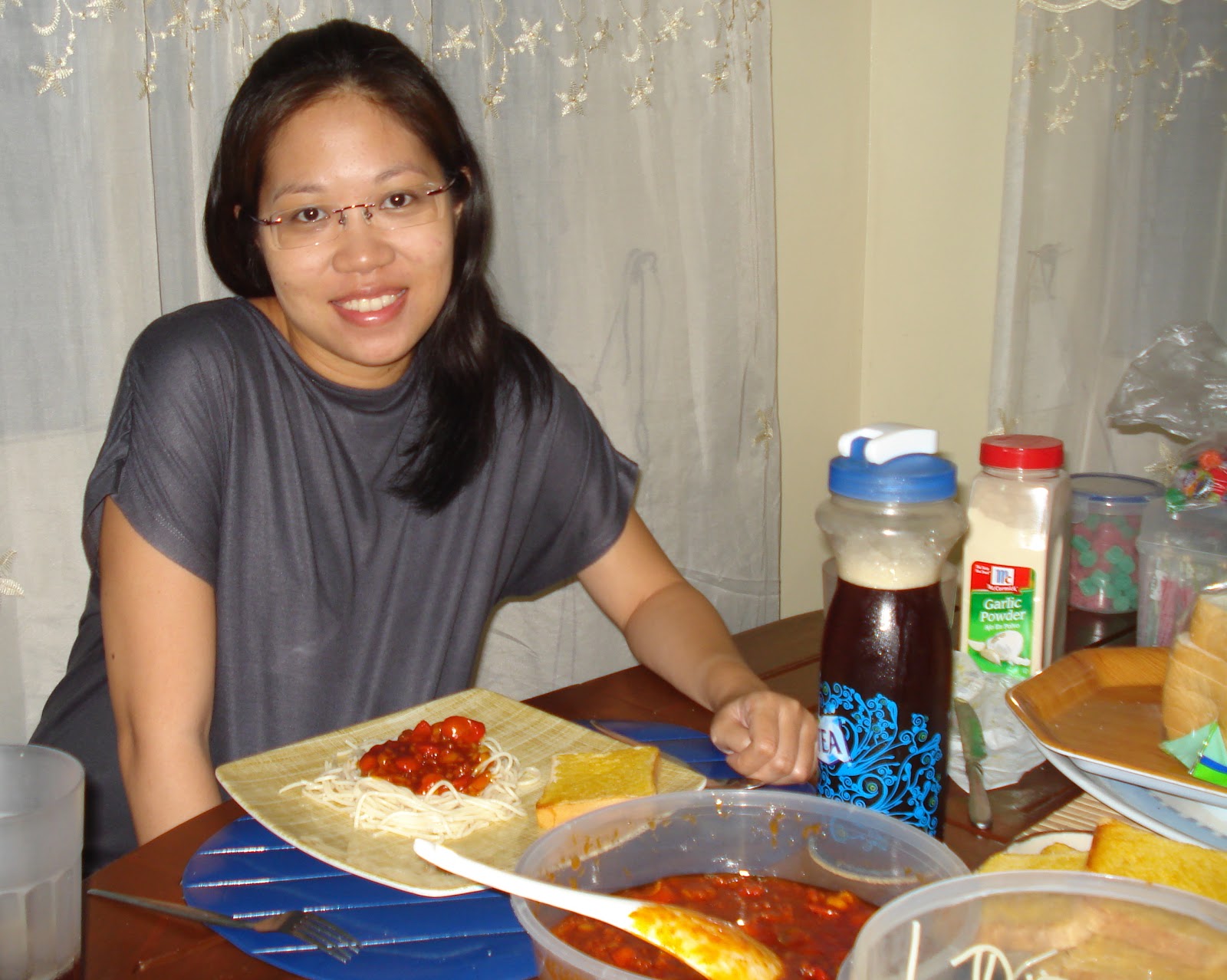 After Shakey’s we headed home for another treat. Kai prepared homemade spaghetti and garlic bread for dinner. Yum, yum, yum!