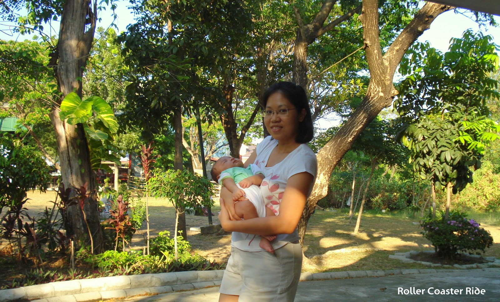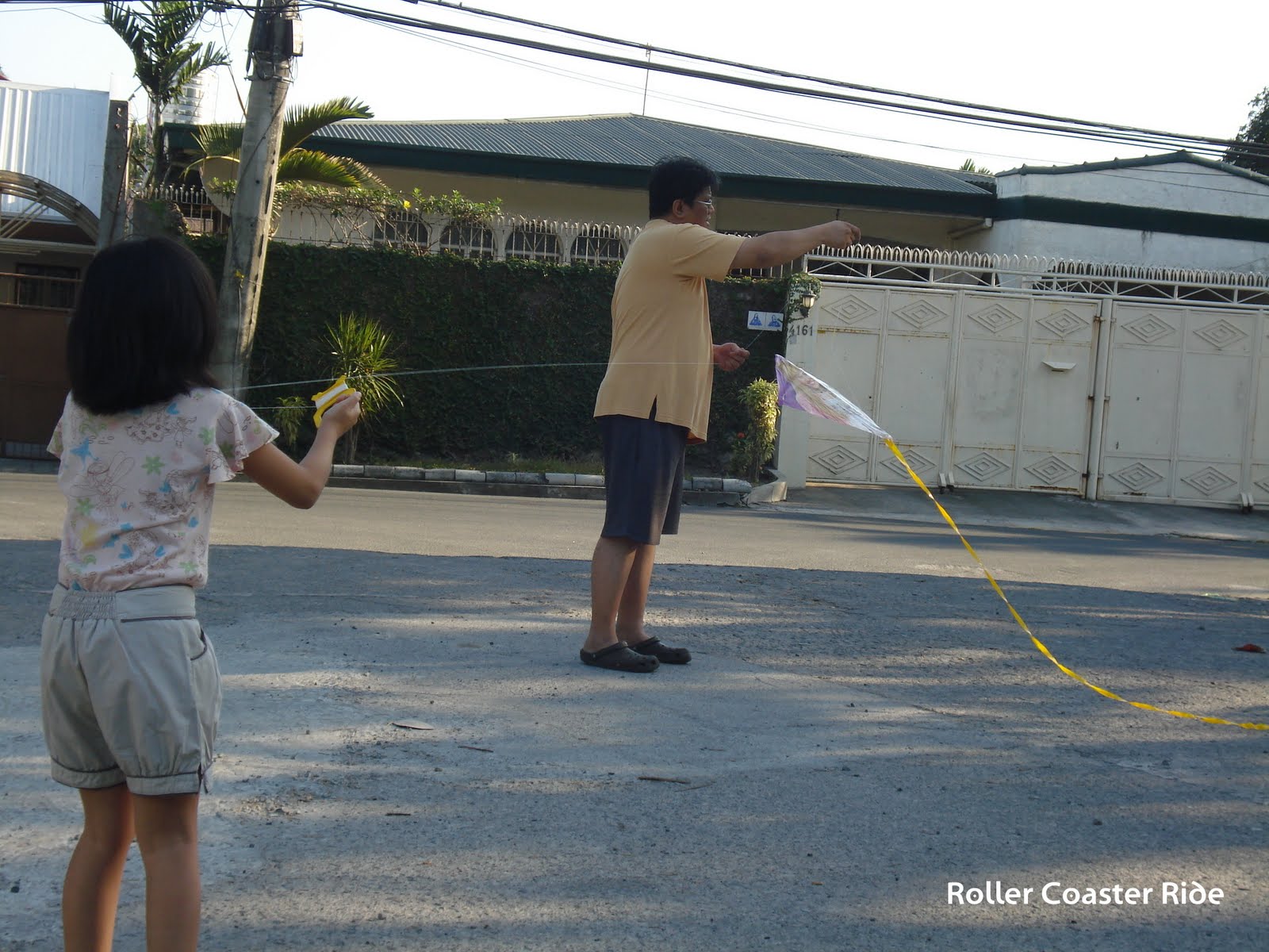 First of all, we found out there was no playground. So, scrap that idea. We could still fly the kites, right? Well, as it turned out, the wide open space was being used by some kids and the village priests. They were playing soccer. The only available space was the parking lot. And so, that’s where Kai and Zoe tried to fly the Hannah Montana kite. Ziya, was at that time, the designated photographer because I couldn’t put down Ziggy since he was sleeping.