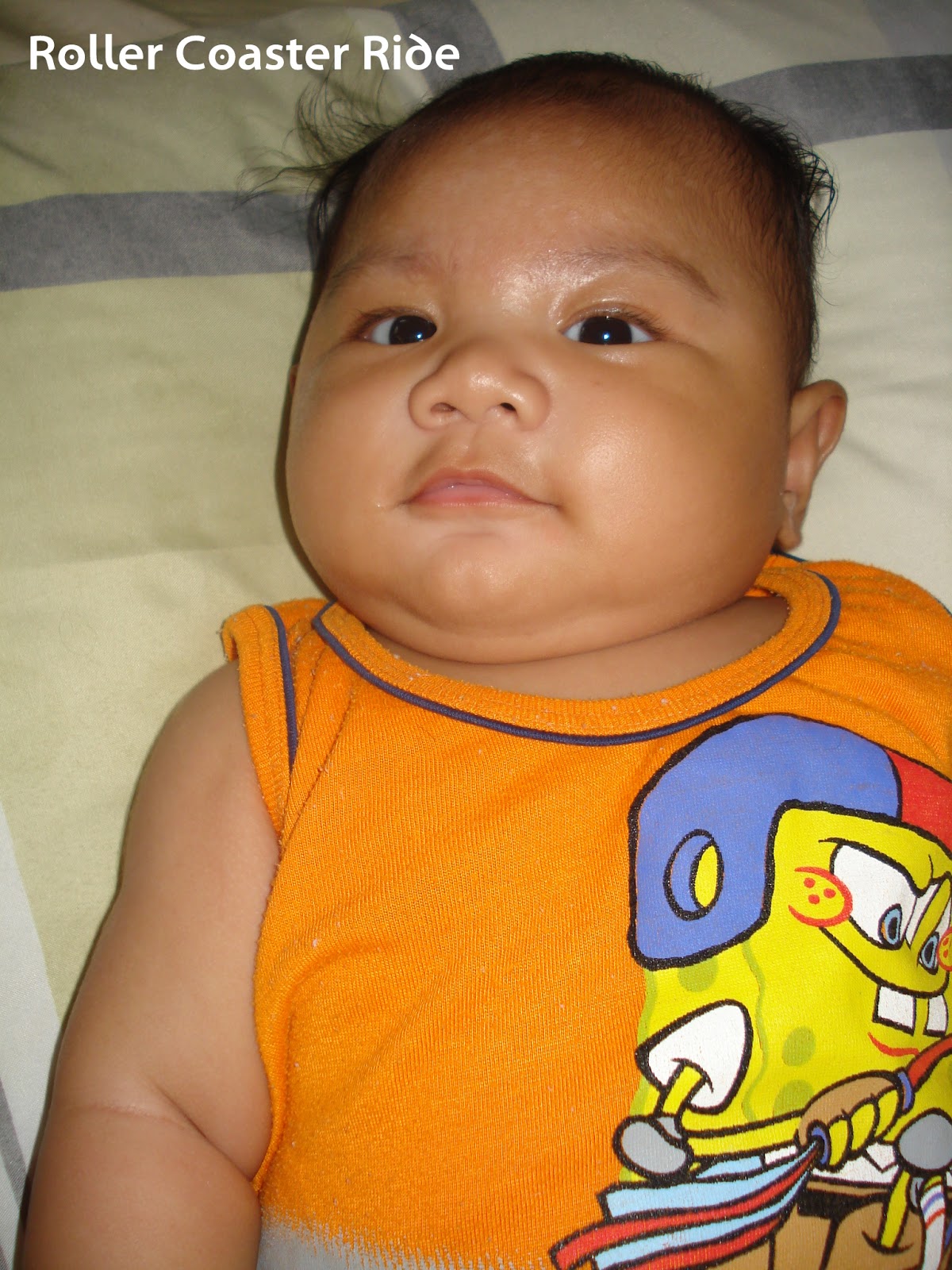 Below is Day 100 photo! Day 100, wow! Time really flies so fast. We are in the hundreds now. Here”s Ziggy wearing his Spongebob shirt again, which he’s filling out real fast. Pretty soon he won’t fit into it anymore.