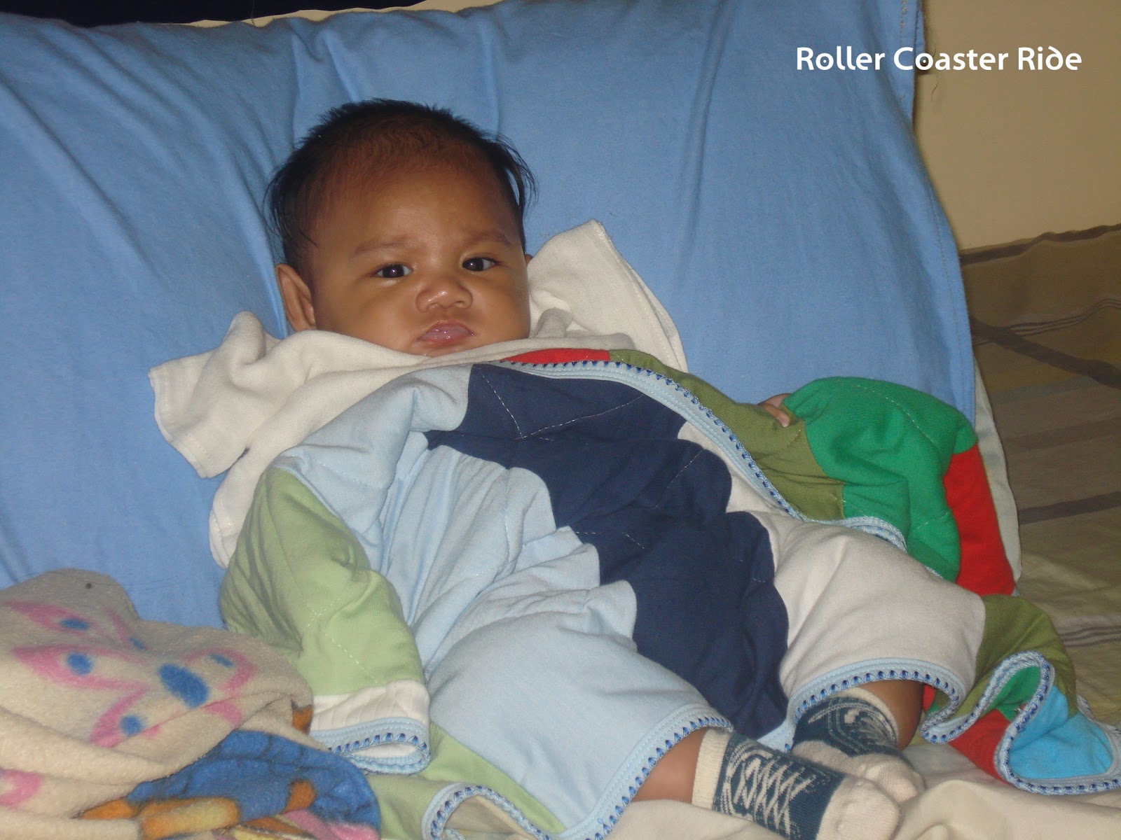This Day 117 photo was taken very early in the morning. I usually prop him up on a sitting position with pillows so he can watch morning cartoons on TV, so that I can have my breakfast while blogging. Haha! During this day, there was a storm and so it was really cold, which is why Ziggy was all bundled up.