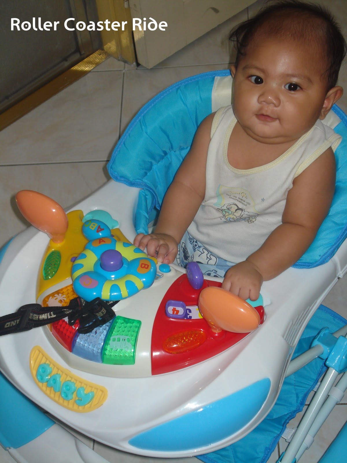 Ziggy also still drools a lot. I really think that it is the onset of teething already and so we bought him his first teether. He hasn’t used it that much yet because I think he’s still trying to get used to it. Will definitely have to take a photo of him using it next time. Aside from the teether, Daddy Kai also purchased a walker for Ziggy already! Obviously, Ziggy’s not really trying to walk yet but we figured it would be good practice for him to just sit in the walker so he can already get used to it. He cried at first but now we think he’s already beginning to like it.Â