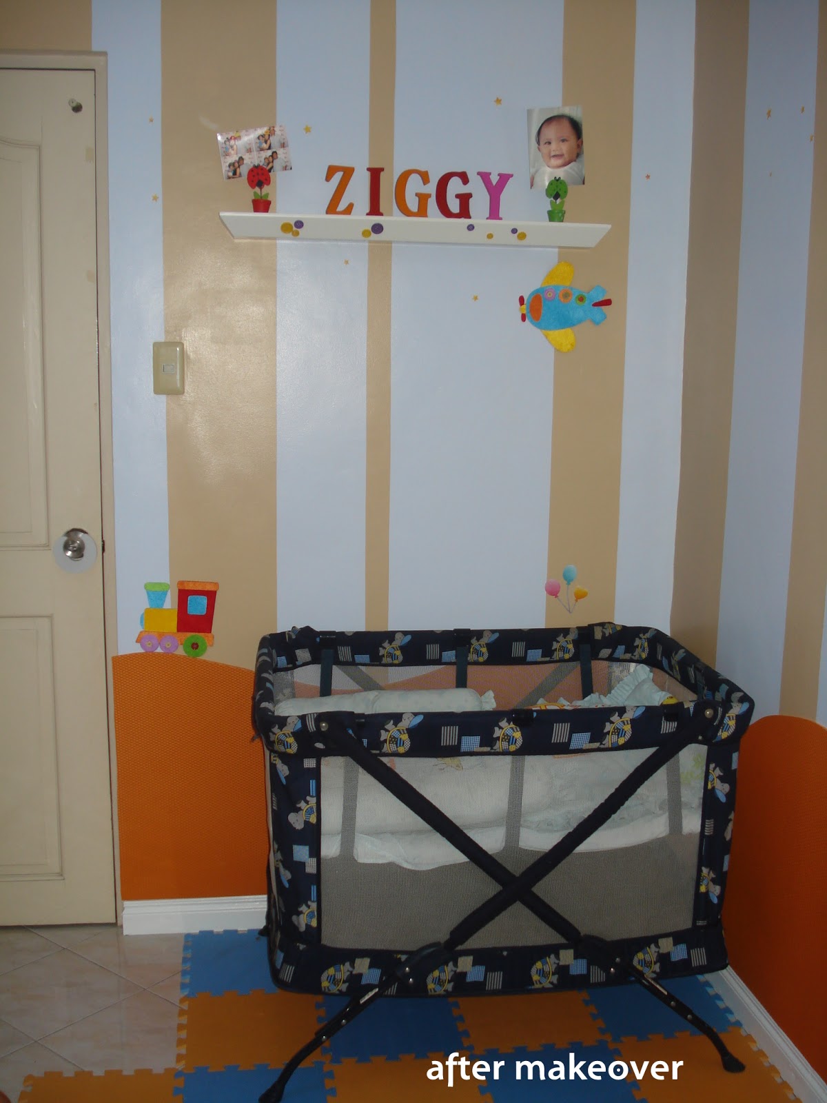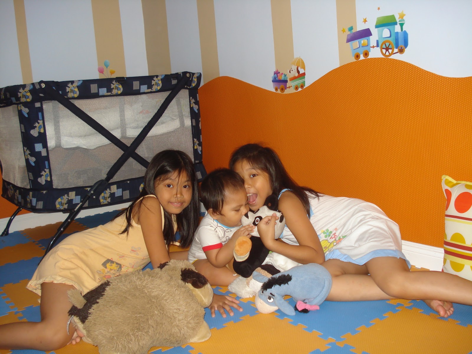 Oh, we just LOVE, LOVE, LOVE the room! Most importantly, Ziggy and even Zoe and Ziya, love it too! This is where they spend most of their time playing. I love that Ziggy can now crawl and roll around because there are mats on the floor. Also even if he accidentally hits his head on the wall it wouldn’t hurt much because of the orange protective covering that was placed there, which is also part of the decor.