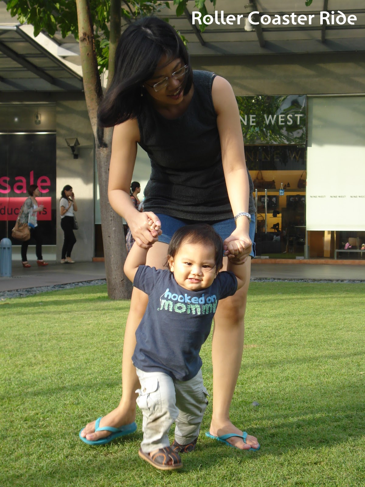 We celebrated Ziggy’s 11th month birthday last week. Since his big sisters were off to visit with their dad, Daddy Kai and I decided to take Ziggy out to celebrate his 11th month, just the three of us. We went to Bonifactio High Street and had lunch. After which, we let Ziggy loose on the grass. Normally, I would not allow this (think of all the germs, right?). But this time, I thought it would be a good first time experience for him. He did have lots of fun, if I do say so myself.