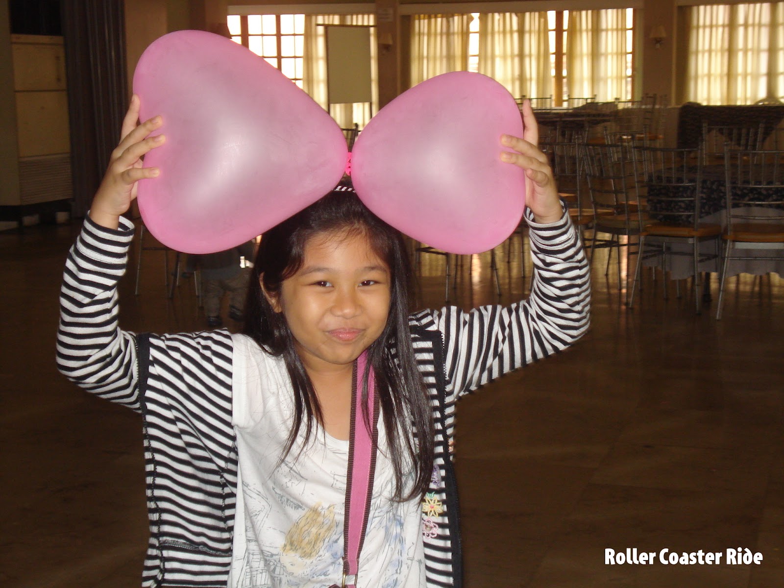 The kids also found a function room they could play in. There were still tables and chairs in the area from an event that had ended probably the day before. There were still balloons hanging on the ceiling. They all ended up playing with the balloons. They had a blast! At the end of it all, you could see a lot of popped balloons strewn all over the place.