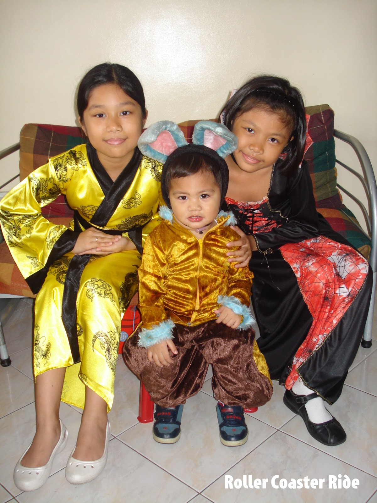 For this year, Zoe dressed as a Chinese girl while Ziya dressed as a Spider Lady. Those are new costumes they are wearing on the photo. During the last two years, they dressed up as witches. Unfortunately, they outgrew the costumes already. It was time for a change anyway and so I went and bought new ones. Ziggy’s bunny costume, on the other hand, is a hand-me-down from my friend, Darla. I was so grateful that we didn’t need to buy him a costume because babies and toddlers grow so fast. For sure, this costume will no longer fit him next year. Anyway, don’t the kids look cute?