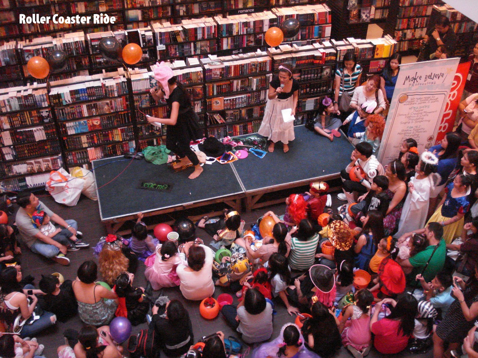 There was a storytelling session about Alice In Wonderland. As you can see, this view is from the top since we were at the second floor. See how many people there were at the ground floor? The photo does not even show all of them. The storytelling is actually quite amusing if you can actually concentrate on watching. But since we were standing by the second floor railing, the kids easily got tired and eventually decided to go. We didn’t even get to see the Geronimo Stilton mascot who was due to come out after the storytelling. Oh well!