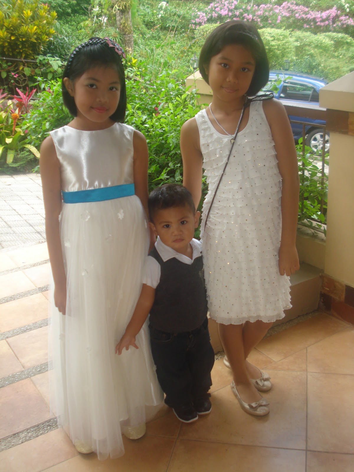 Last Saturday, we attended a really nice and intimate wedding. It was the wedding of Jeff and Trina. Trina is actually my hubby’s friend, former workmate and one of Ziggy’s ninangs (godmother). I was really excited to go because I’m really happy for Trina and at the same time it was the first time that the five of us (me, hubby and kids) will be going to a wedding together. Plus, the wedding was going to be held in Rosemont Gardens in Laurel, Batangas, which has a really nice view of the Taal Volcano and Tagaytay.