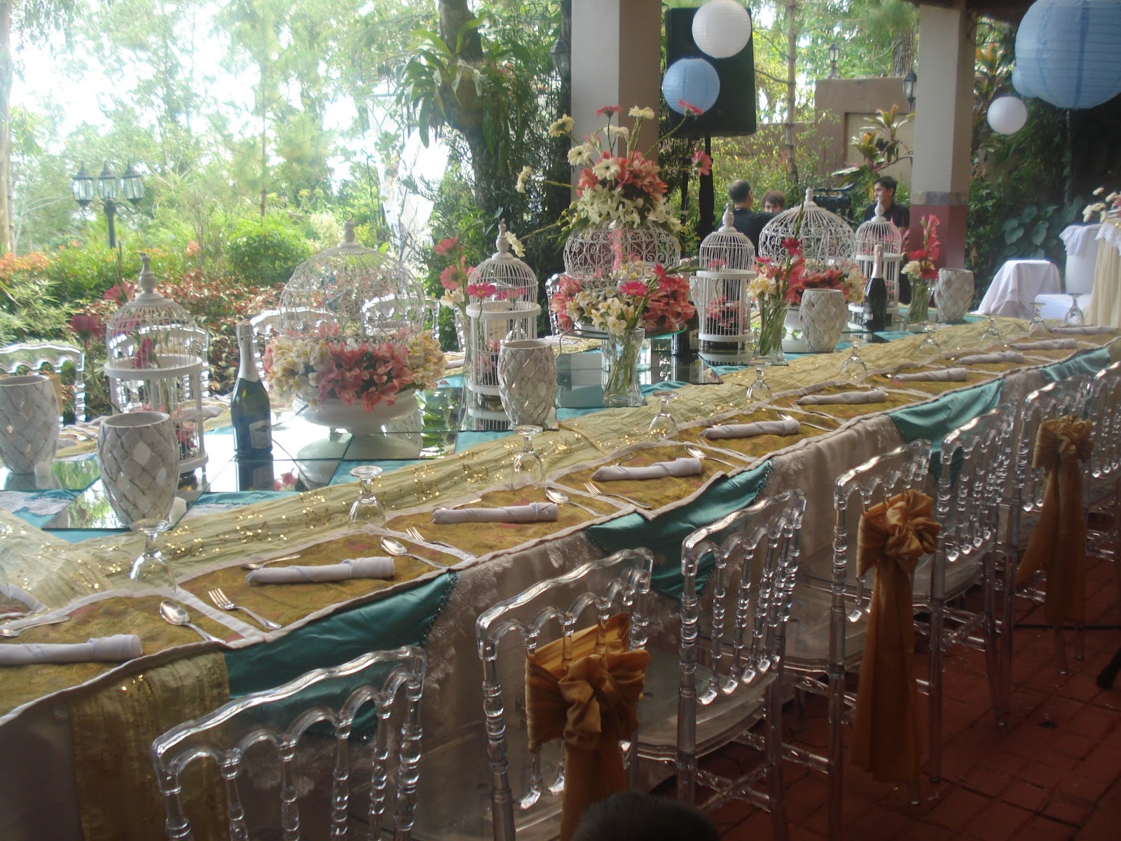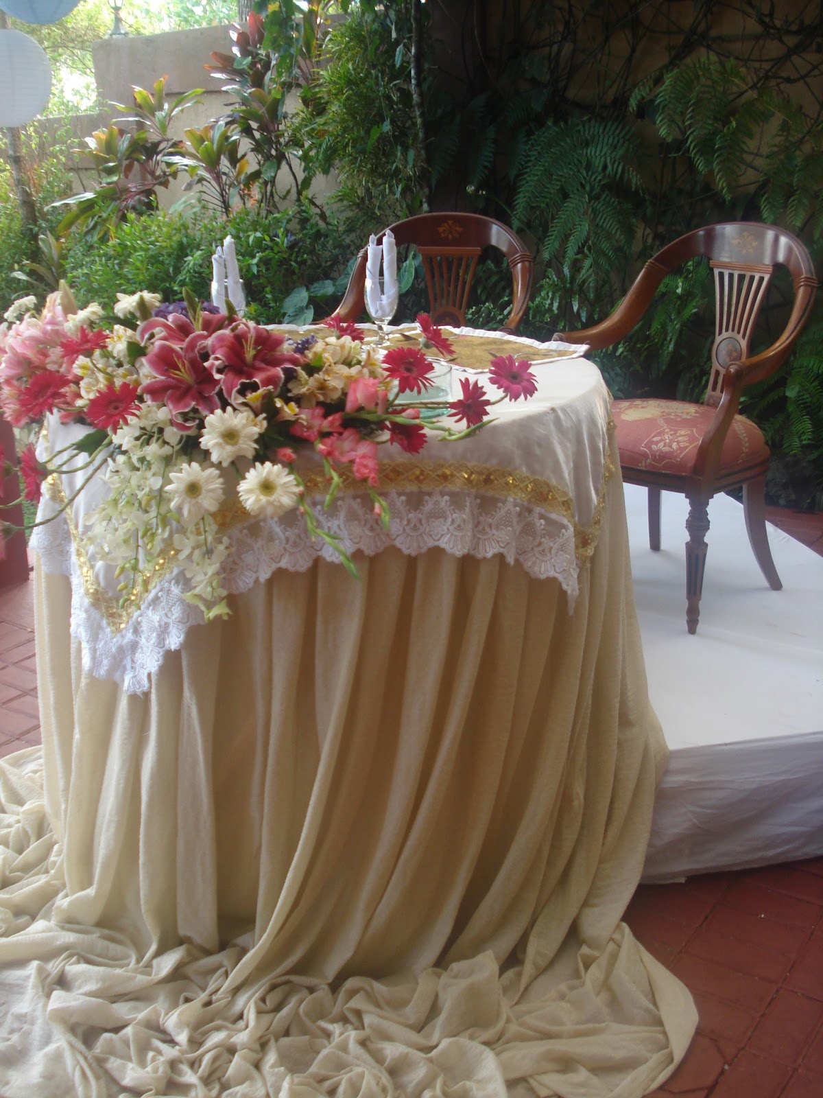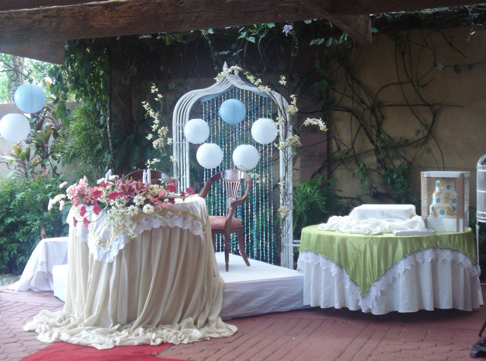 Here’s where the bride and groom sat during the reception. Actually this was the area where they had the wedding rites as well, which wasn’t the plan. You see, it rained really hard just when the wedding was about to start and so they had to move the wedding area from the garden to this area too. It was really too bad because the wedding area was really nice. You’ll see photos of it later below.