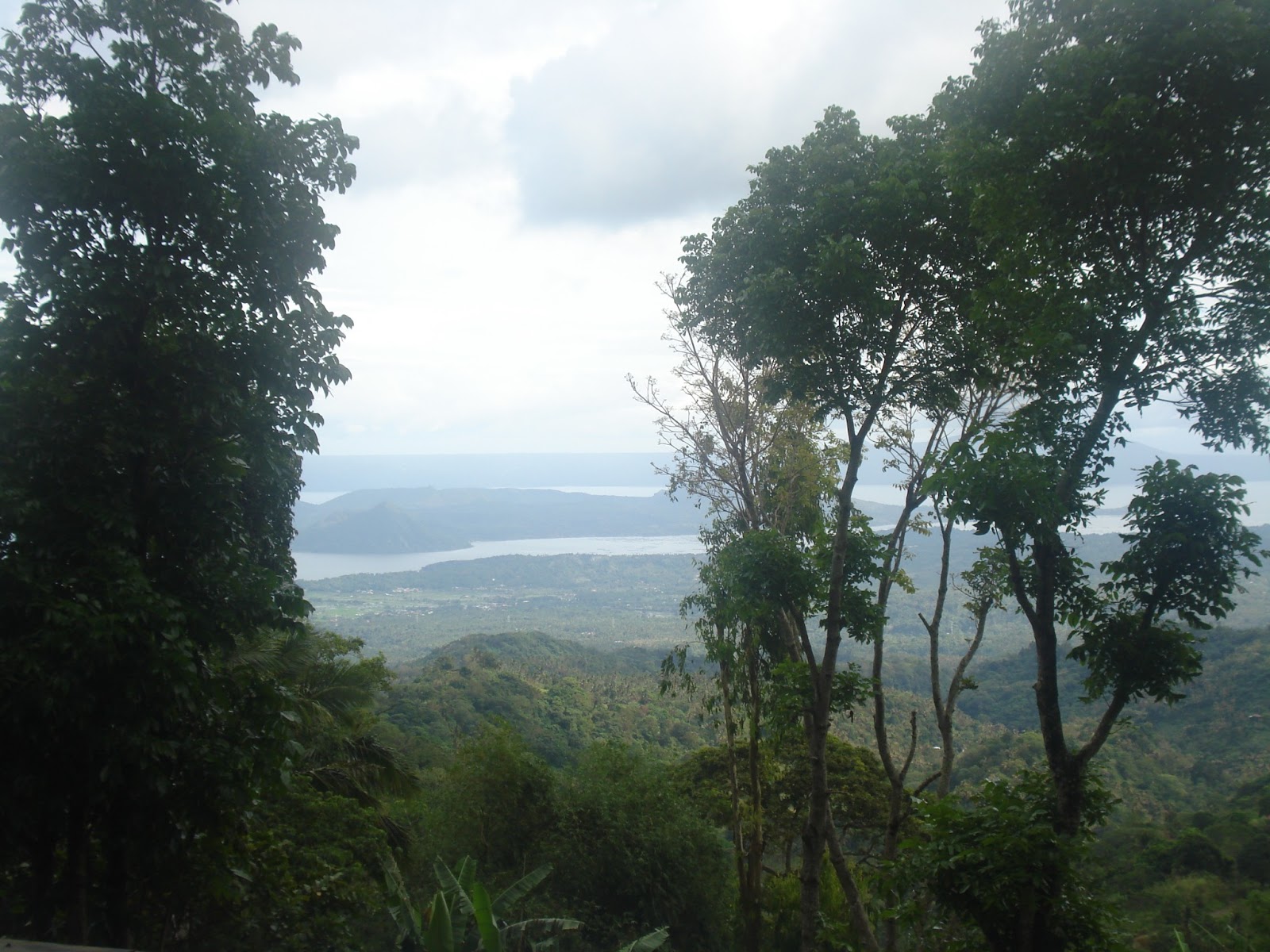 Beyond the dining area is a sliding door leading to a wrap-around balcony and this is the view you’ll see. It looks small here on the photo, but can you see the Taal Volcano?