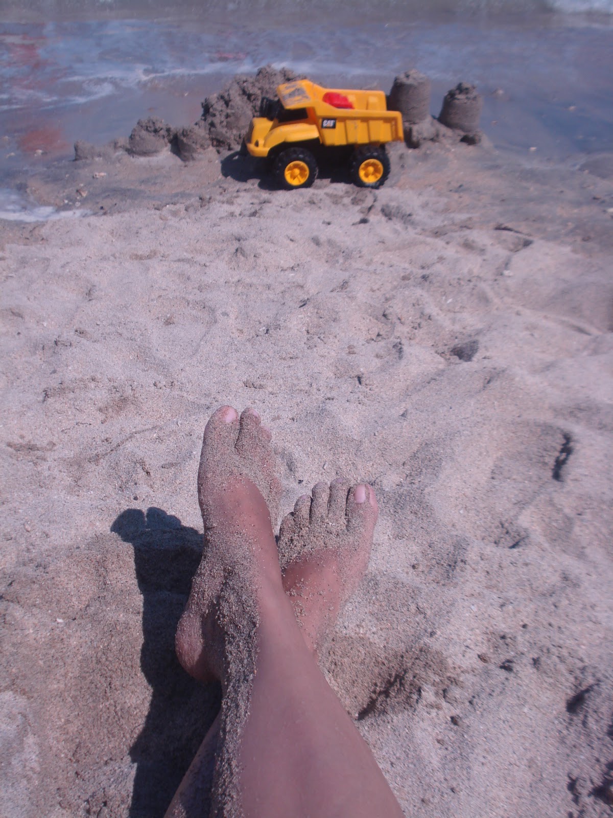 That time we brought Ziggy’s dump truck to the beach too, which he of course excitedly filled up with sand.