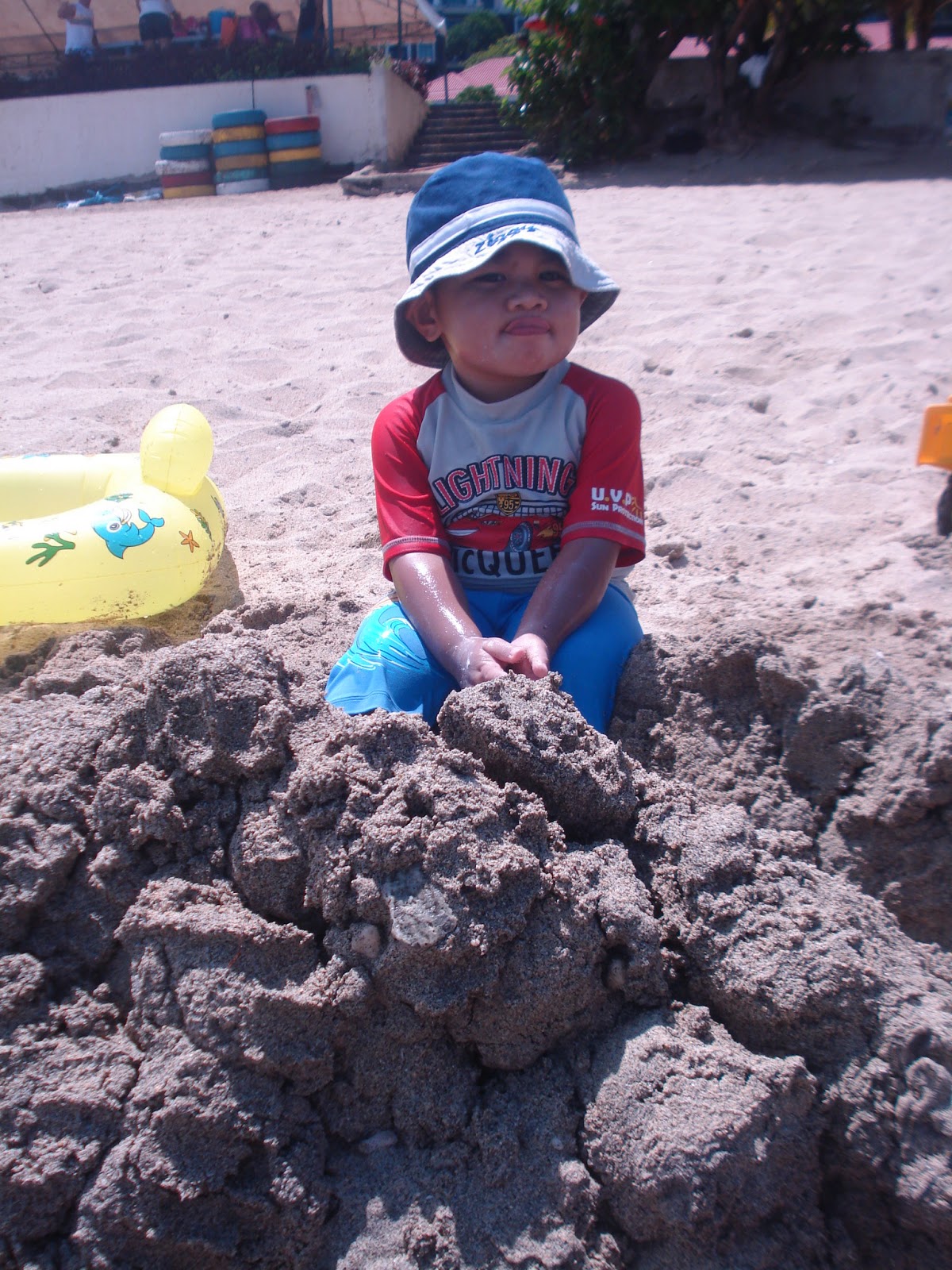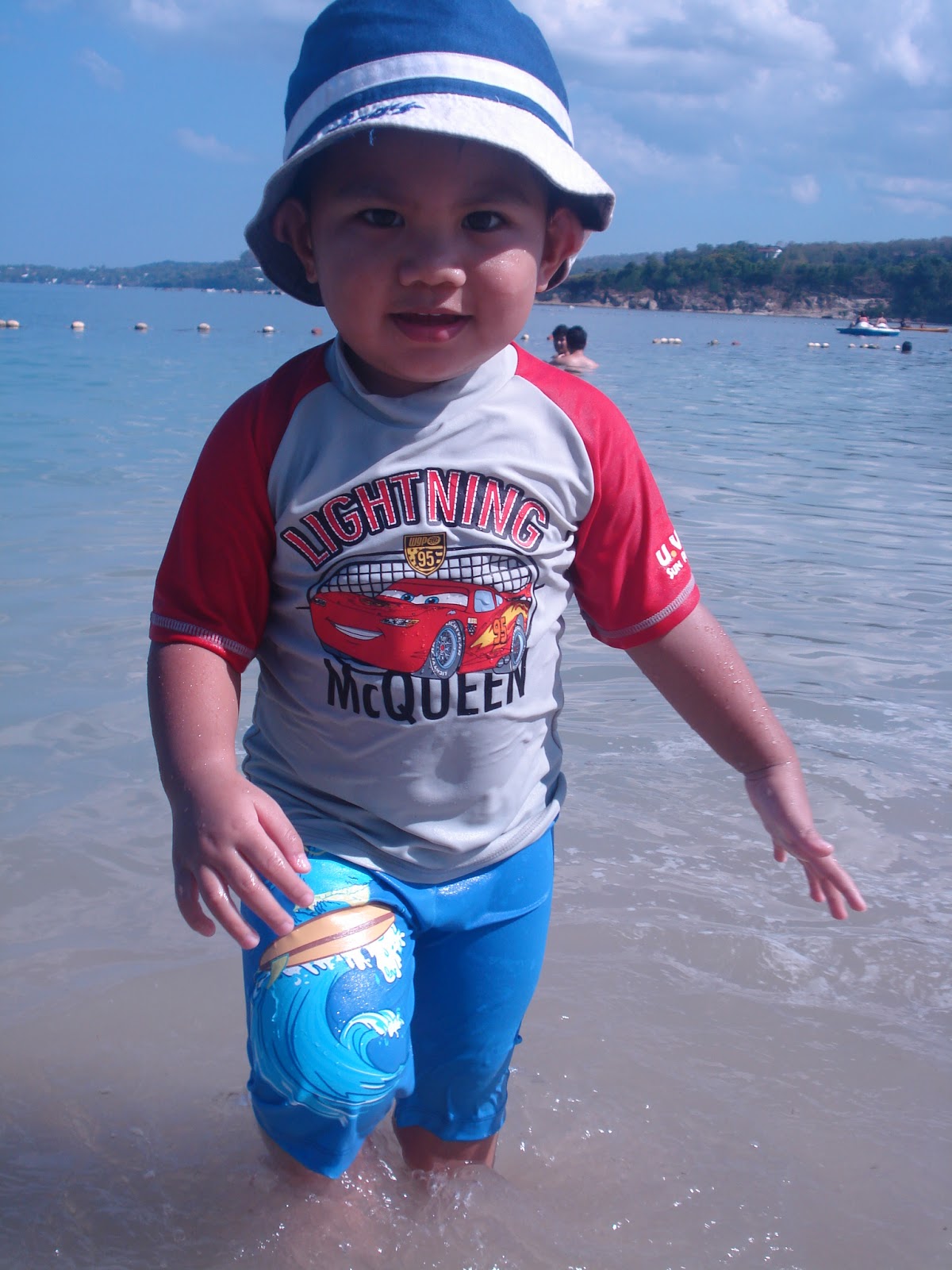 Here’s one photo I took of my water baby, Ziggy, who showed no fear of the water. He’s so adorable to watch wading at the beach in his mismatched rash guard. It turned out that the bottom of the Lightning McQueen rash guard we bought him was too big and so we had to let him wear another one instead. Oh, and that hat he’s wearing with his name on it, got lost at the end of this morning beach trip. It really made me feel bad because he loves that hat and wears it every time we go out especially when it’s sunny.