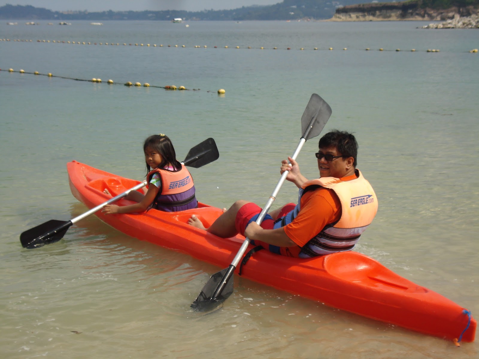 It was really nice kayaking with Zoe although I made sure we didn’t go too far from the shore. My arms were already aching after several minutes, a sign that I am so not fit! It was enjoyable just the same because the water was calm and clear. It was great! When we got tired, we turned over the kayak to hubby and Ziya so that they could take their turn.