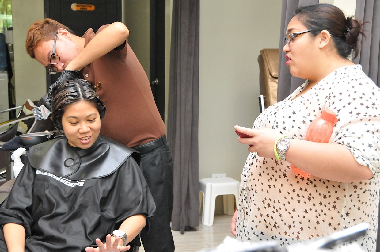 My colorist at Fringe took the time to ask me about that because they needed to make sure that I will not be allergic to the stuff they will put on my hair. Given that it was so long ago that I had my hair colored, they did a skin test on me first to see if I will get any allergic reactions. Thankfully, I didn’t. So, off they went to start on my hair. Don’t you just love how they take care of their clients? Oh and take note, they served me homemade lemongrass iced tea and some biscuits too. Love it!ย (Photos below courtesy of MRLightworkz Photography)