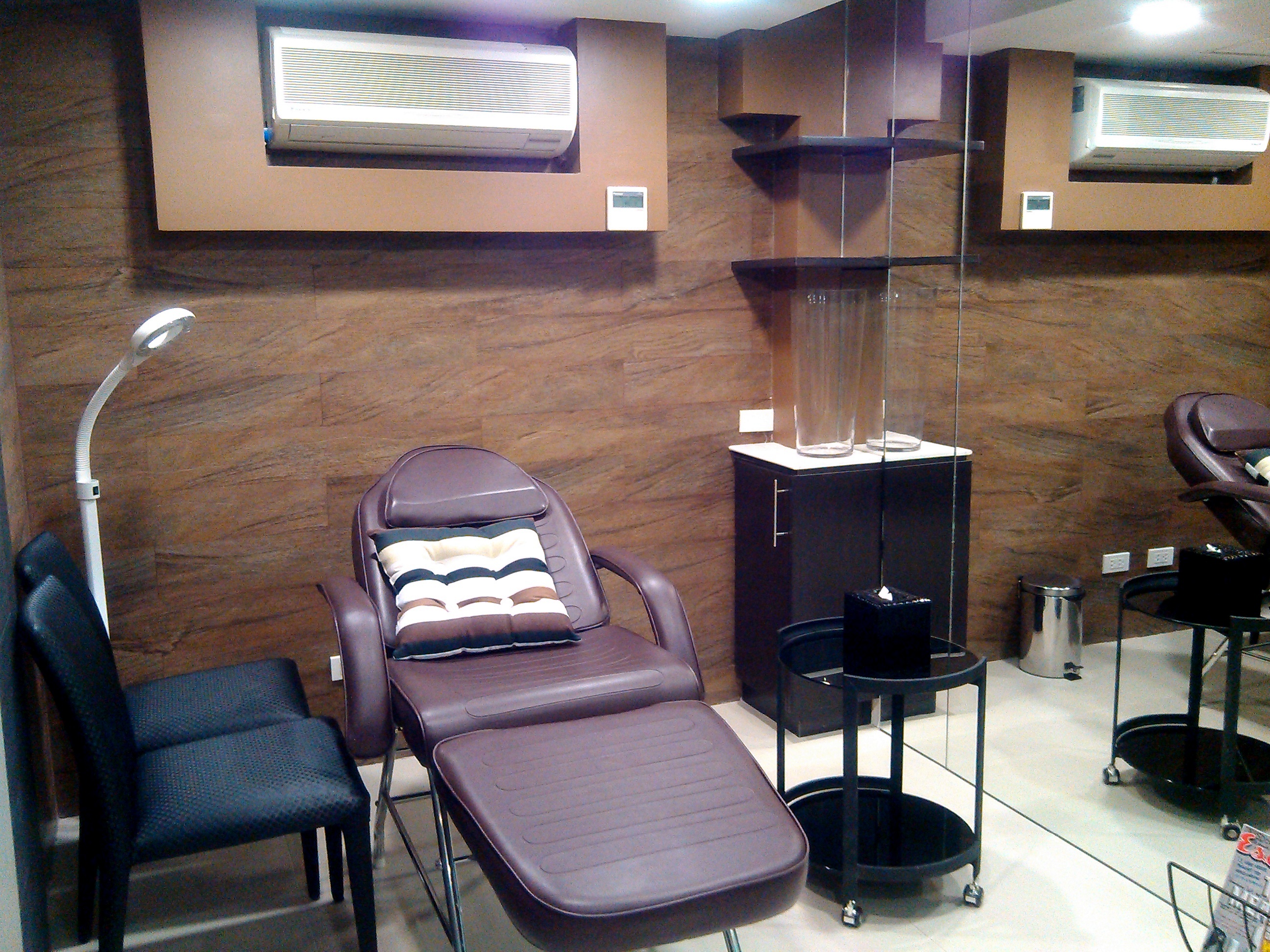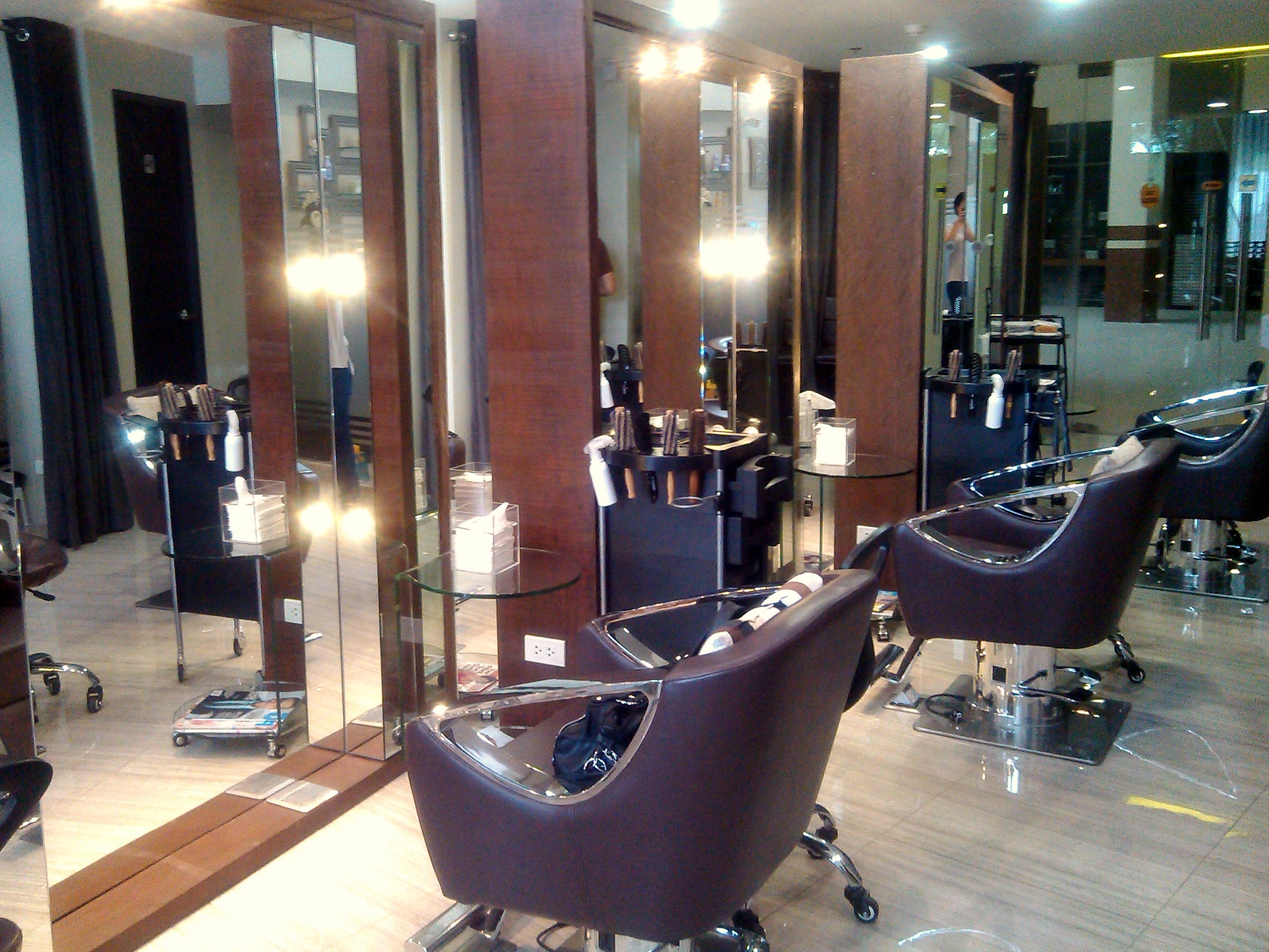When you go inside the salon, you’ll be greeted by this sight. There’s a small reception area to the right of the entrance. There are only a number of salon chairs with lots of space between stations. That way, you don’t bump into the customer next to you. The mirrors are so huge that you can see yourself from head to foot.
