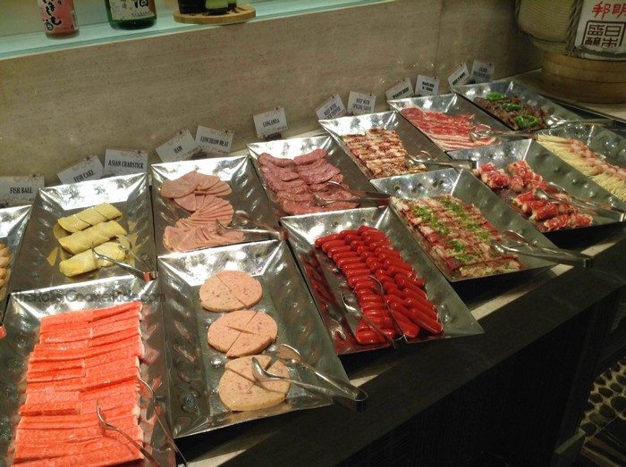 Here’s a closer view of what you can find at the Grill station. One side consists of all kinds of beef, plus kikiam, fish cakes, fish balls. The other side has so many kinds of seafood.