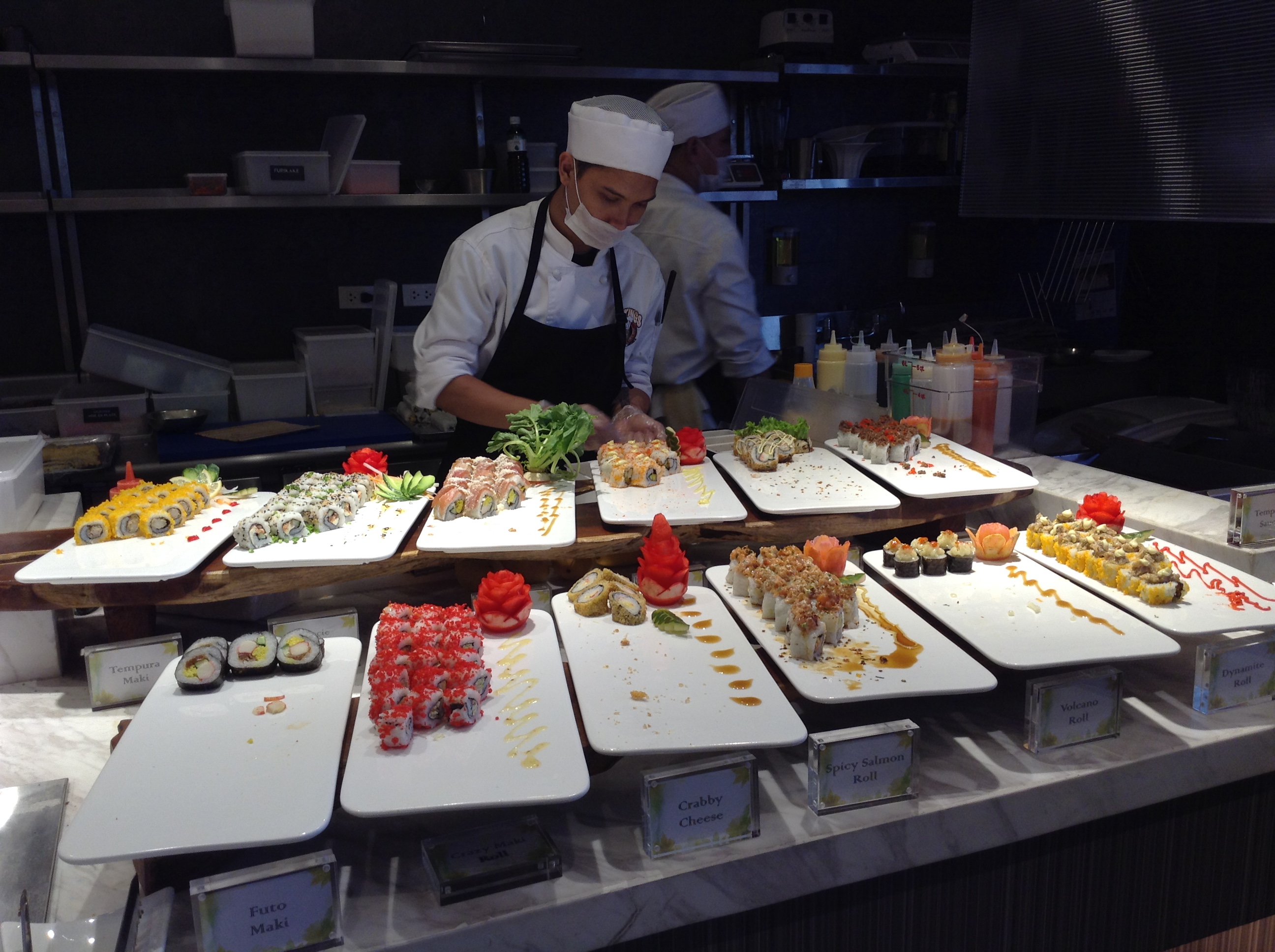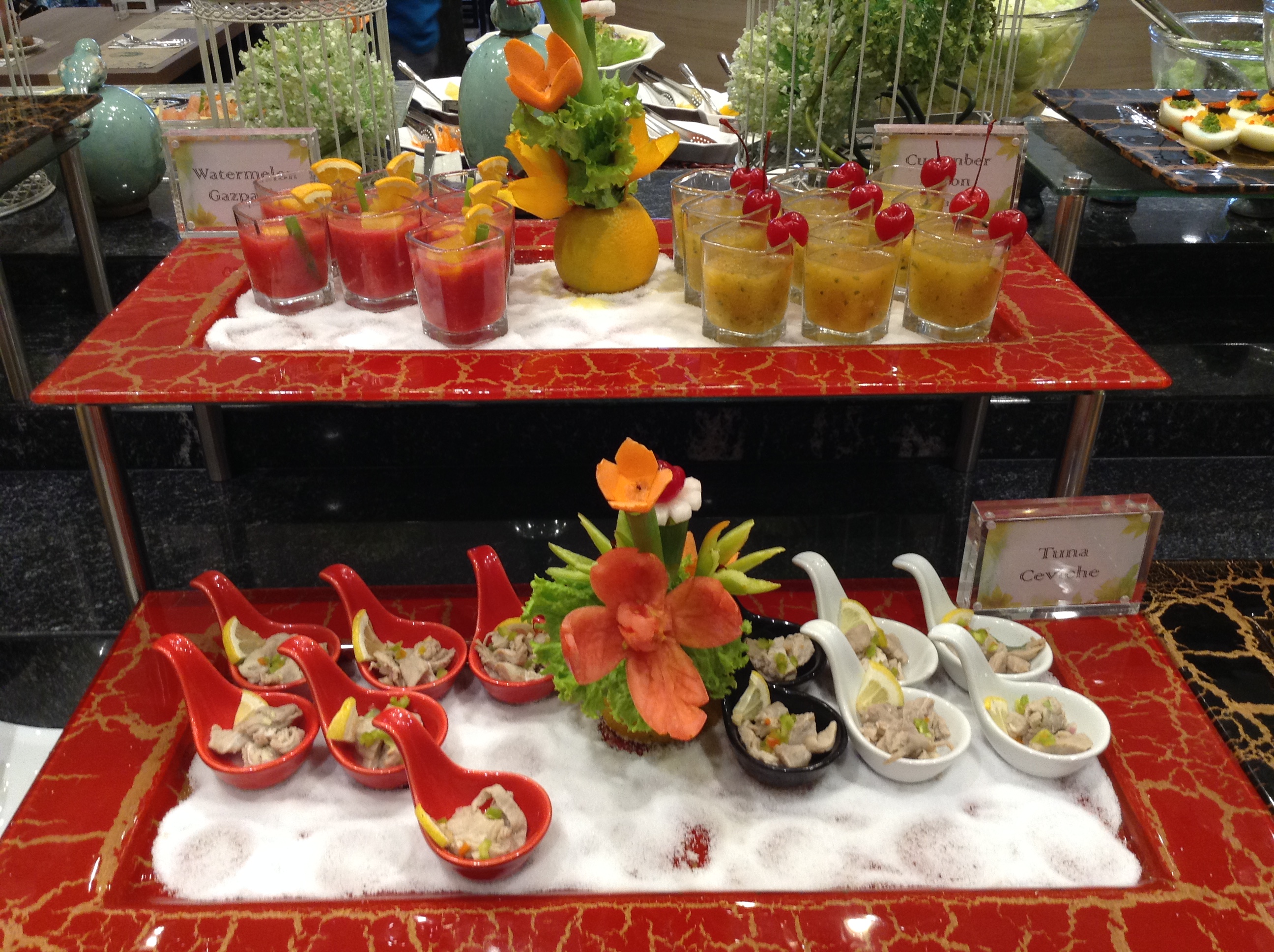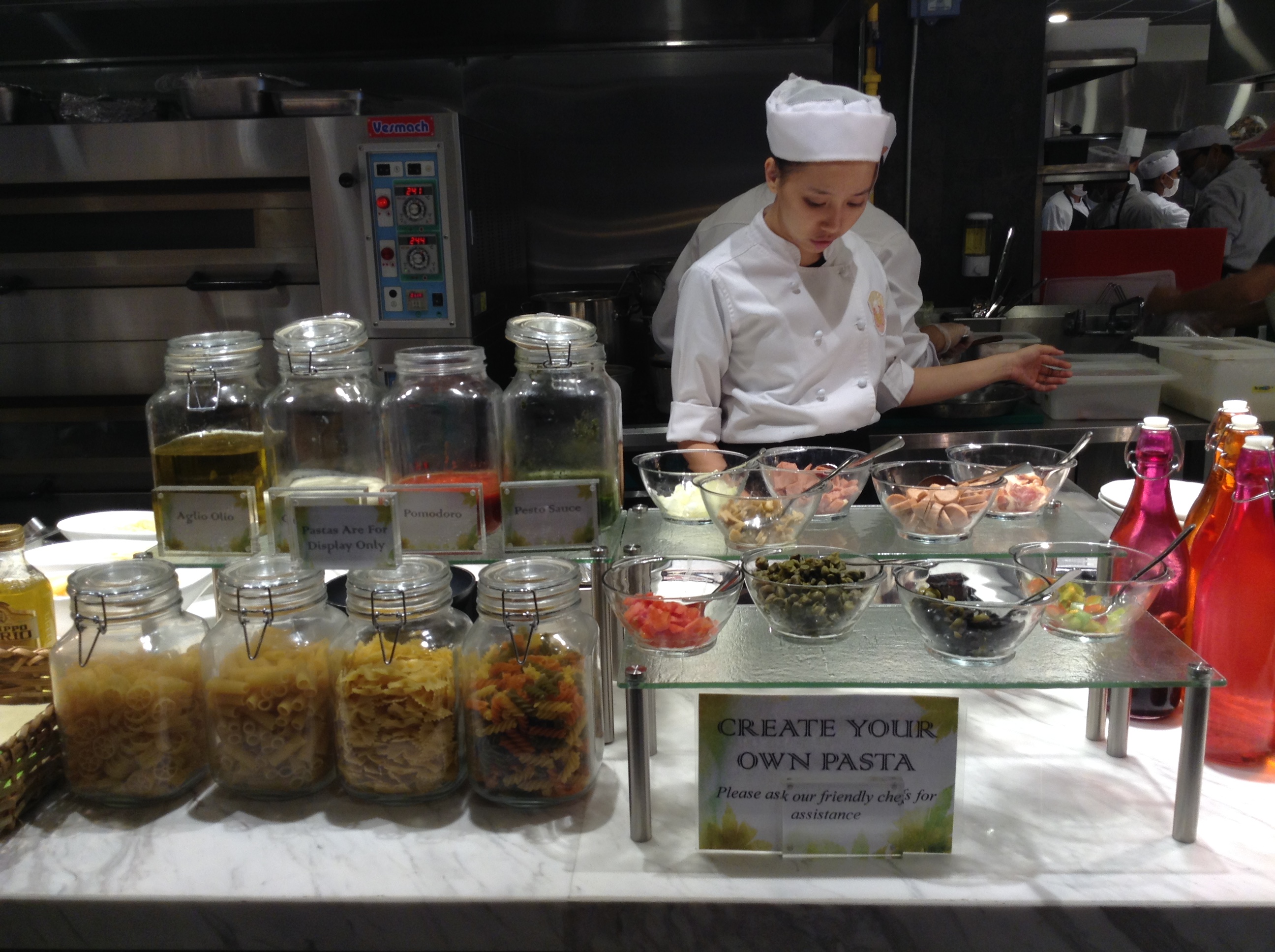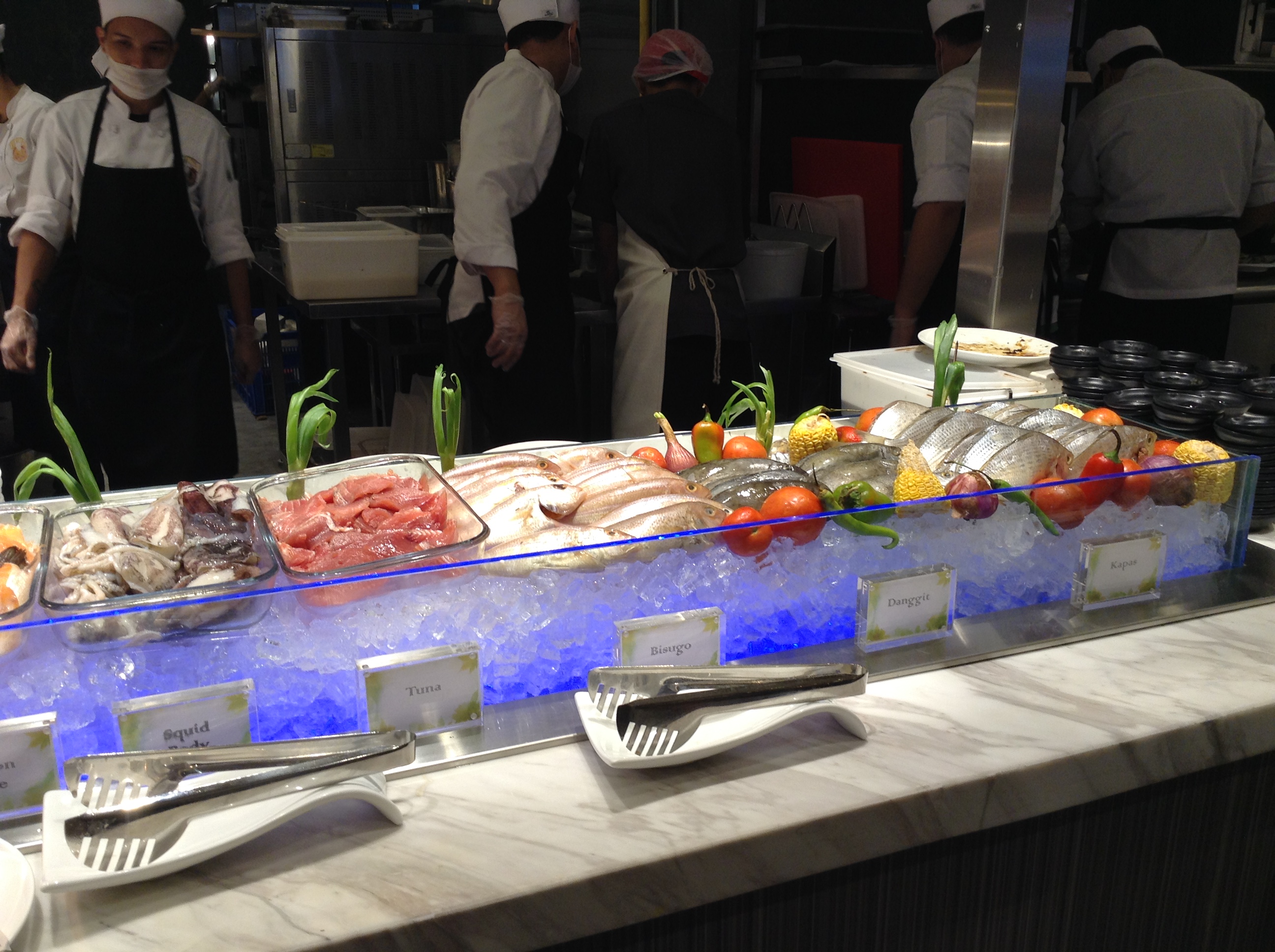Their main courses include American, Chinese, Korean, Japanese, and Spanish dishes. They have a carving station (where I got a lot of what I ate, hahaha!), a make your own pasta station, a dimsum station, a fresh seafood station, a barbeque station and a noodle station.