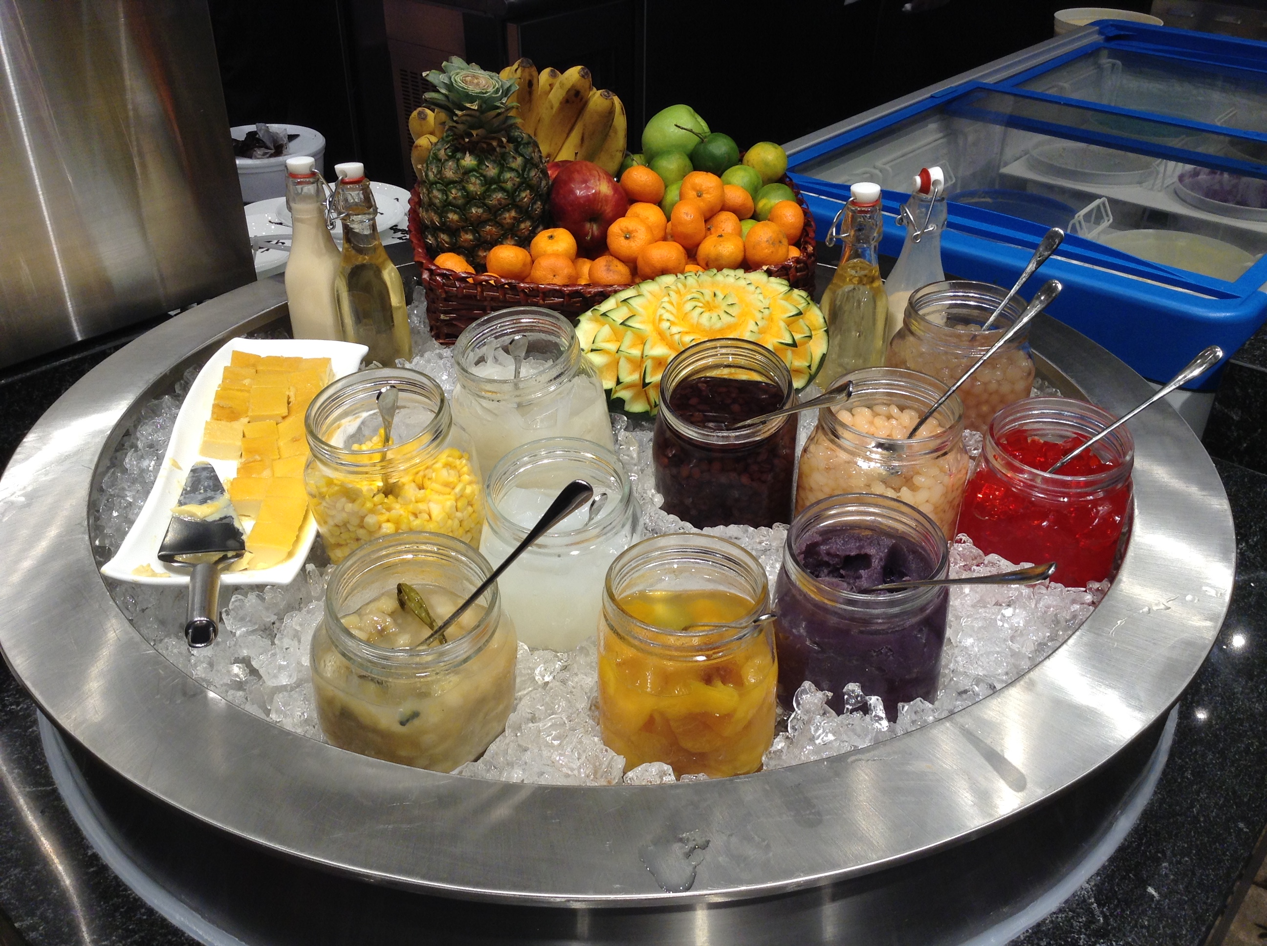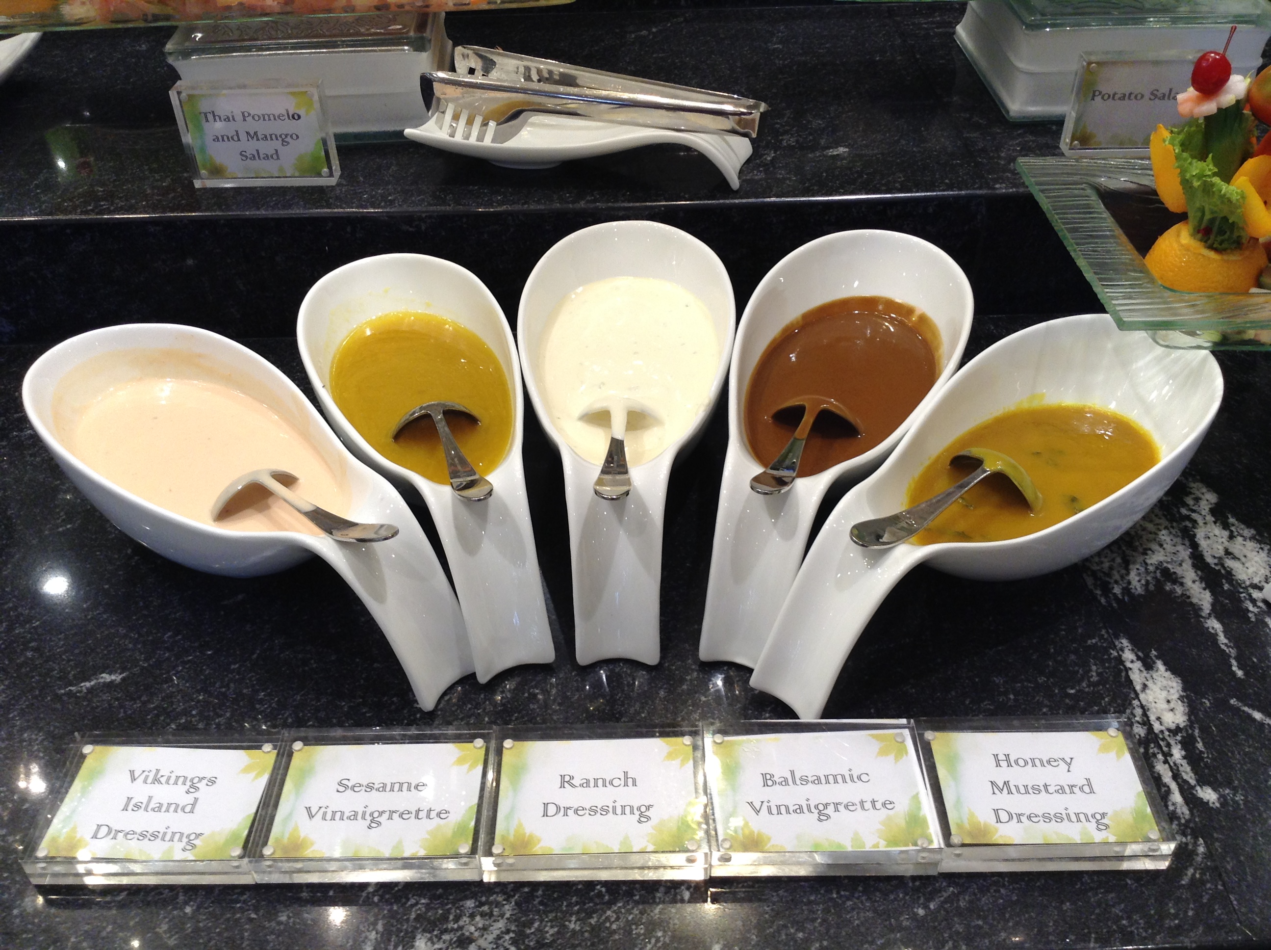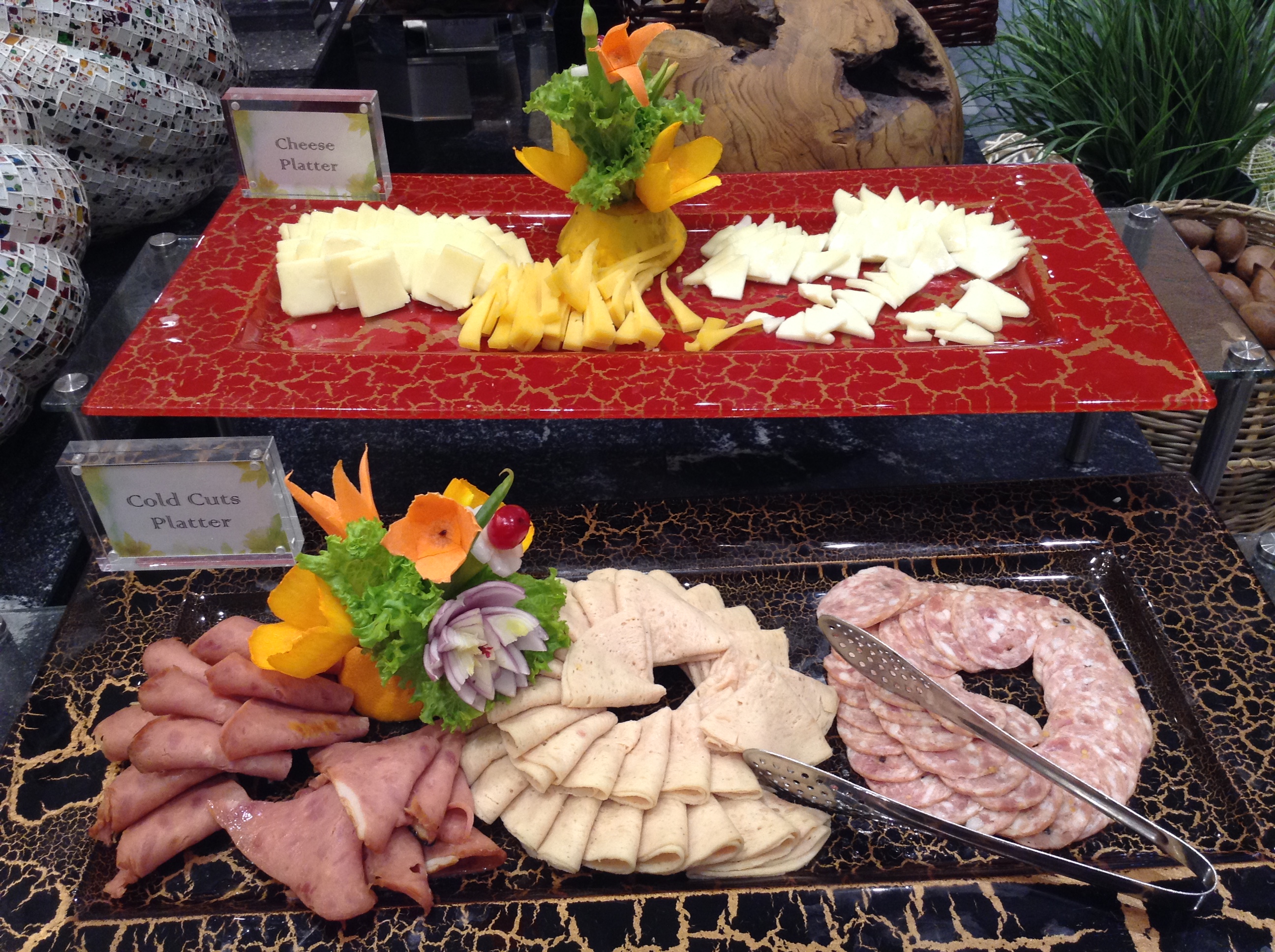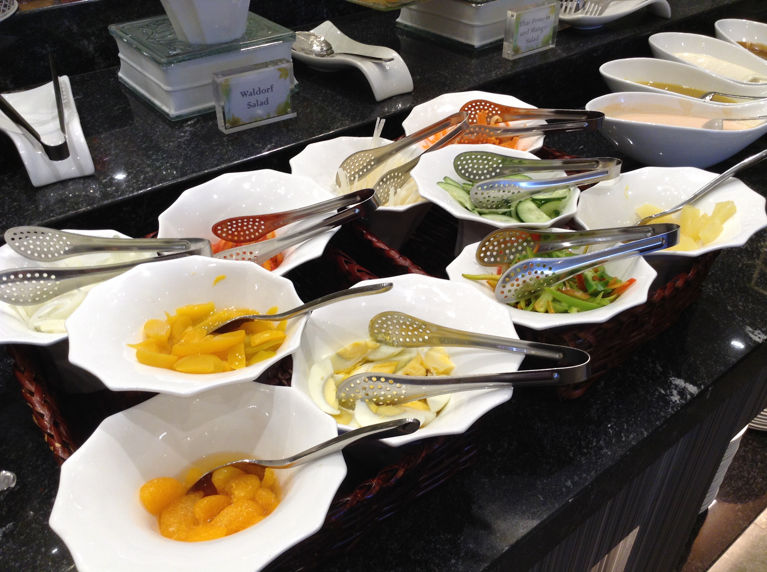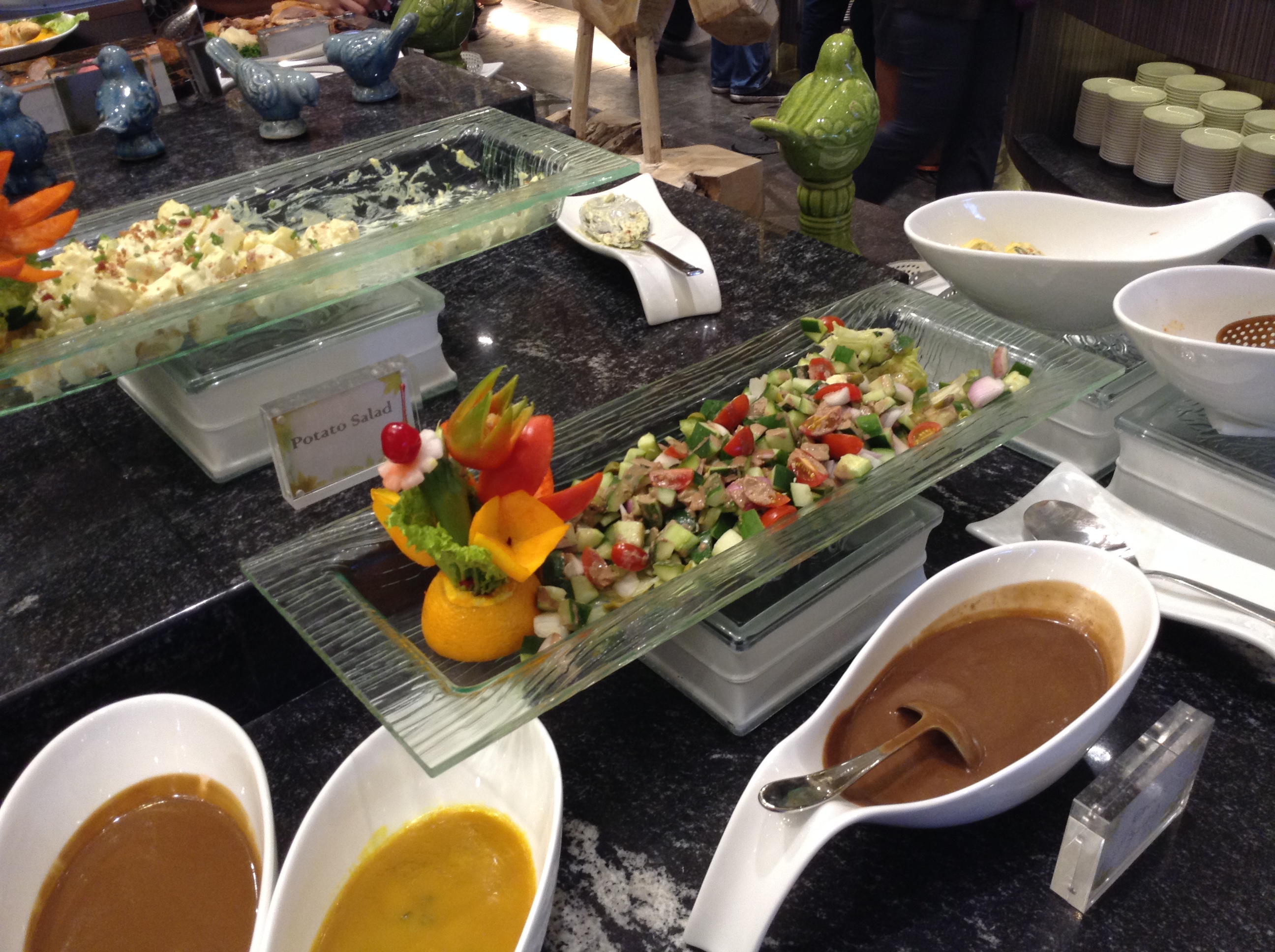 Then there’s the salad bar where all the appetizers are. There a wide selection of breads, cheeses, finger food, salad toppings and dressings.