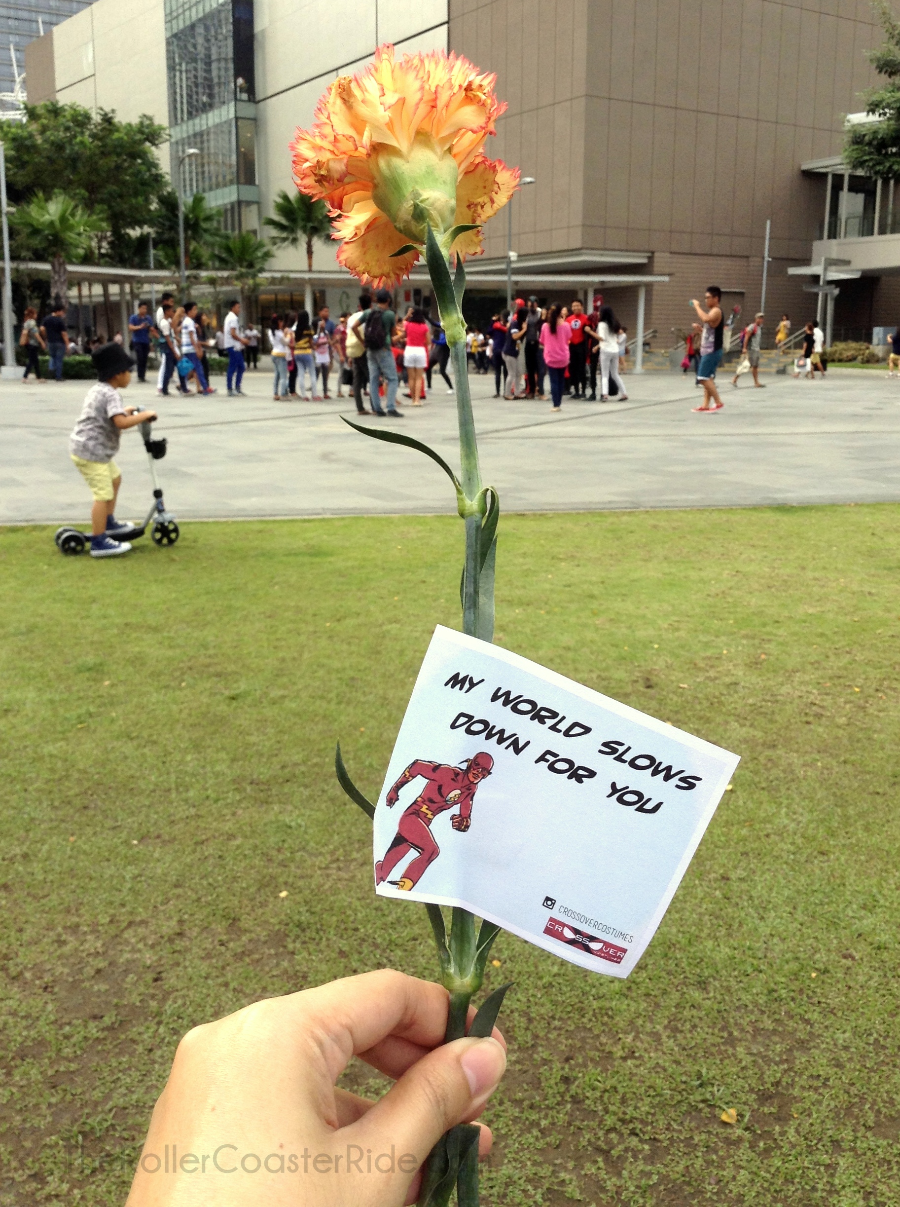 Ziggy was so happy to see Spiderman, his favorite superhero. He gamely posed with him, of course and high-fived him on more than one occasion. I, on the other hand, was given this really nice flower with a sweet message, by no less than The Flash. Hahaha!